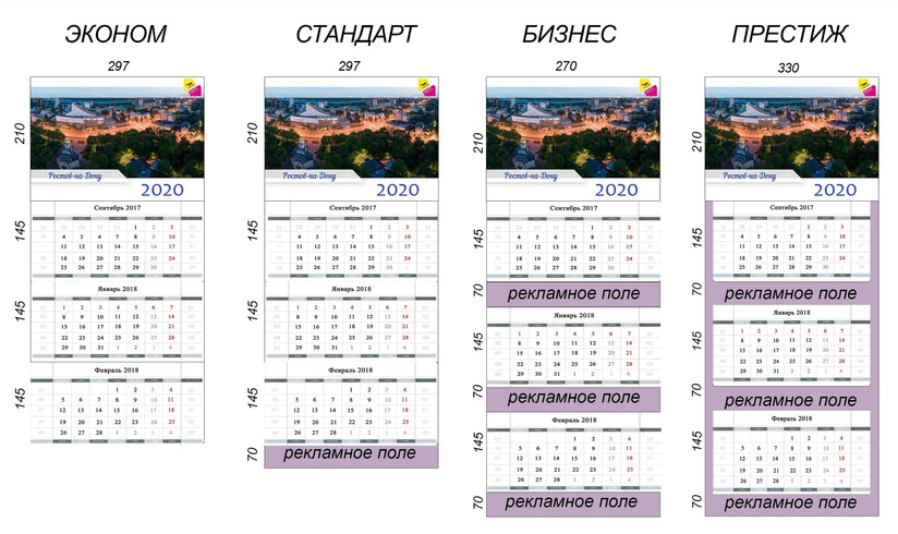 • Виды квартальных календарей: Овация • Галант • Премиум • Престиж